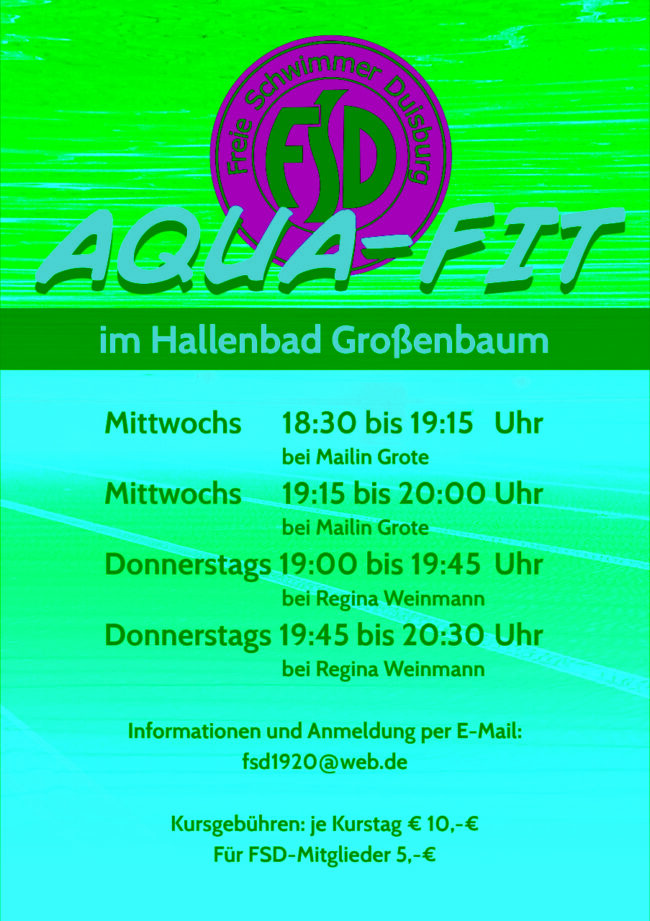 Hallenbad Neuenkamp, Paul-Rücker-Str. 33, 47059 DuisburgMittwoch von 19.00 bis 19.45 Uhr bei Mailin GroteMittwoch von 19.45 bis 20.30 Uhr bei Mailin Grote *** ausgebucht *** Hallenbad Waldschule, Sittardsberger Allee 263, 47249…